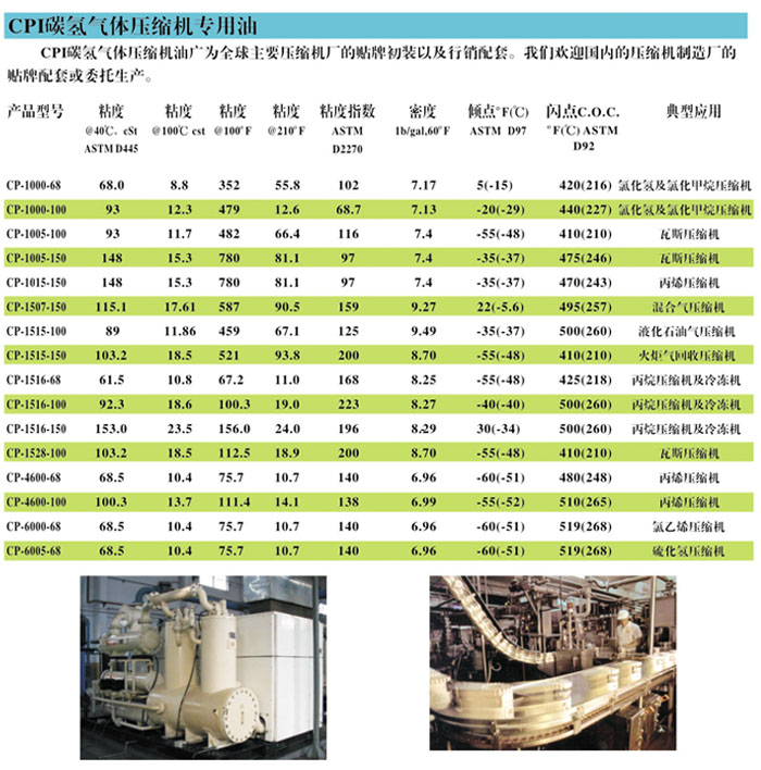 CPI-4600-100-F/CP-4600-100-F系列食品級空壓機油是具有抗銹及防氧化長壽命的潤滑油,用于溢出螺旋式壓縮機。